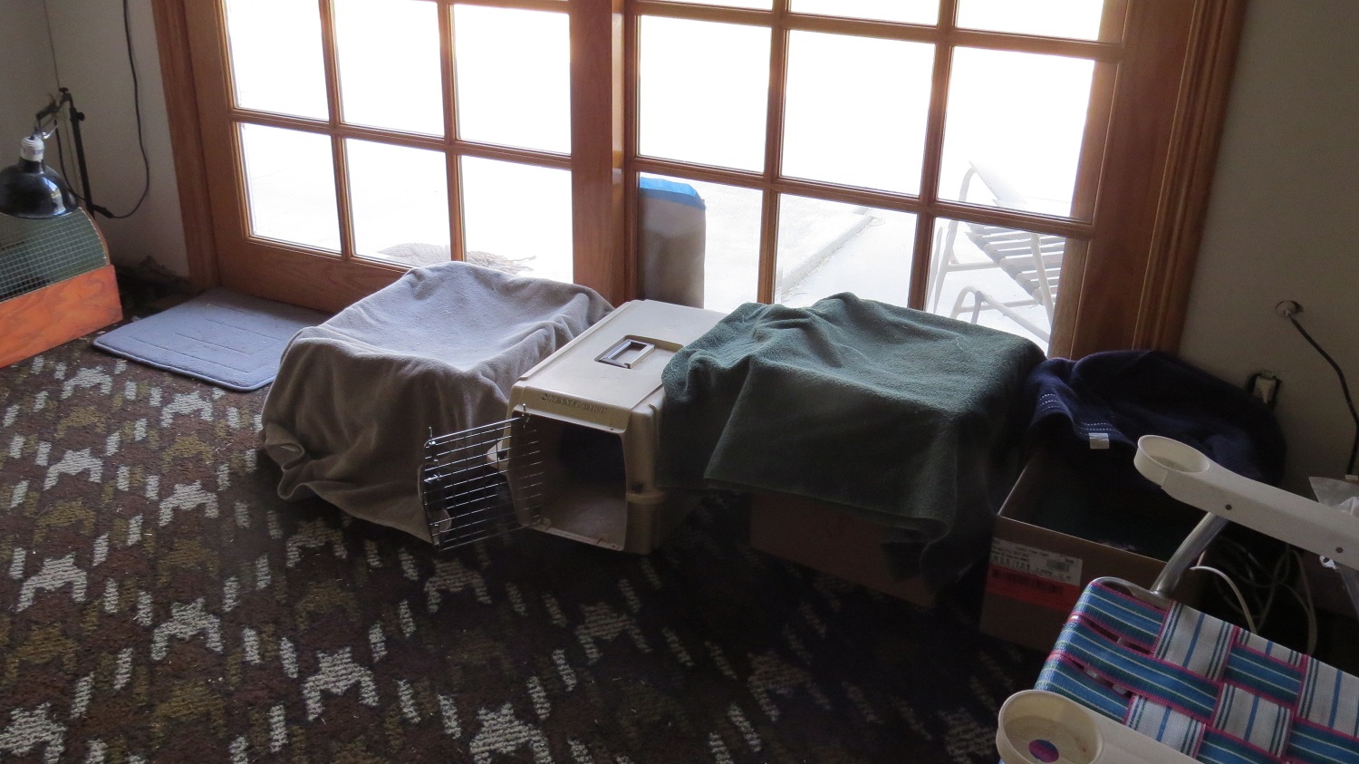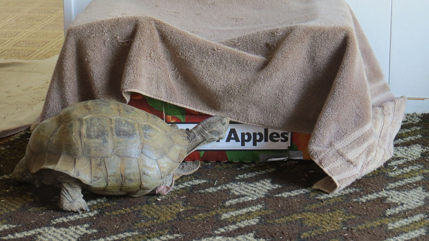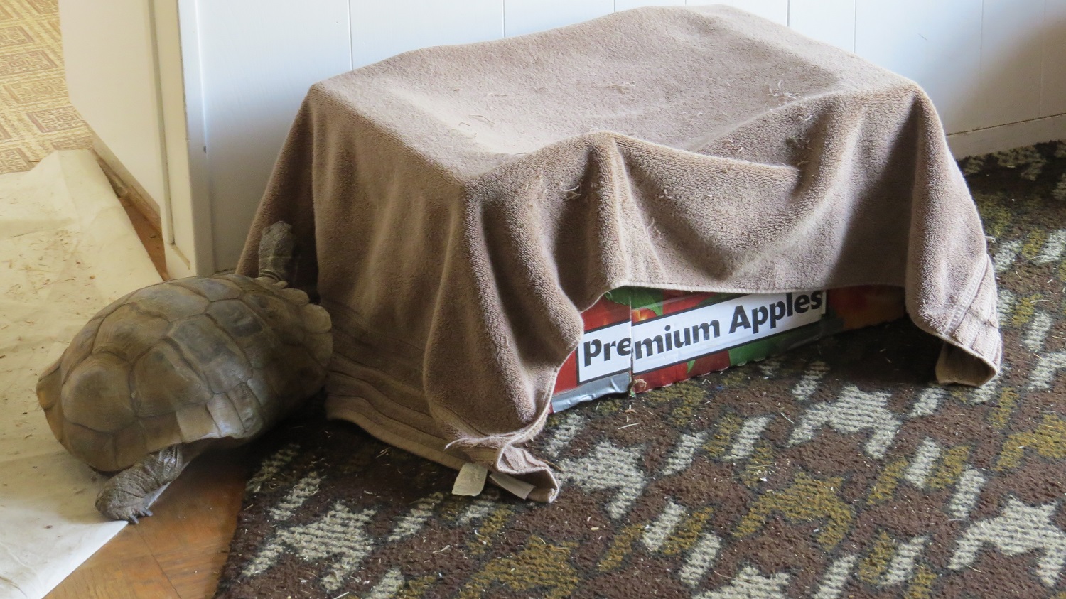 Back in November of 2018, two of the California Turtle and Tortoise Club (CTTC) Valley Chapter rescue facilities were in the path of the Woolsey Fire and were under mandatory evacuation orders. 33 Tortoises had to be moved. Most were hibernating and were moved inside their hibernation boxes. But there were exceptions. Not all hibernating tortoises were sleeping in boxes, and there weren’t enough appropriate ones available for transport with such short notice. Additionally, several of the sick and injured kept awake for medical reasons were active when the move occurred. A club member's family had moved but not yet sold their old house and this was the place where all 33 tortoises were taken. It was outside the immediate evacuation areas but the air was still full of smoke. As a result, all tortoises—even the ones that were awake—had to be kept inside. Below is a slideshow of the makeshift evacuation accomodations inside the safe house.